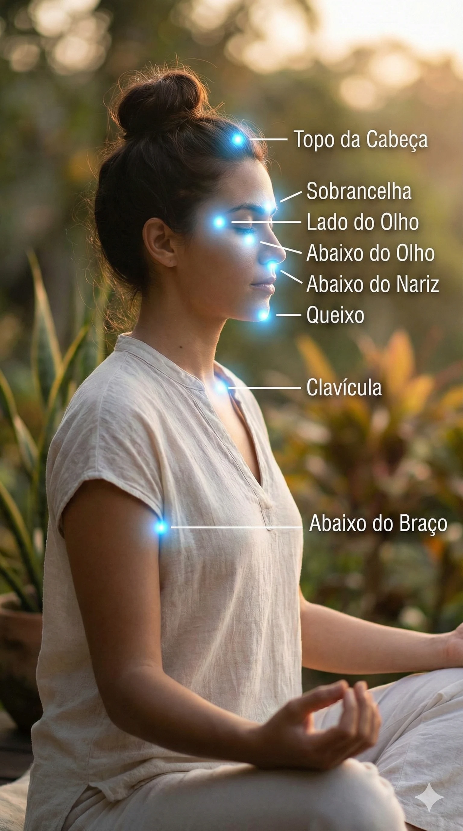 A EFT (Emotional Freedom Techniques) é uma técnica poderosa de liberação emocional que atua diretamente na raiz de dores, traumas e bloqueios. Através de toques suaves em pontos energéticos (meridianos), você dissolve emoções acumuladas e reprograma padrões limitantes.